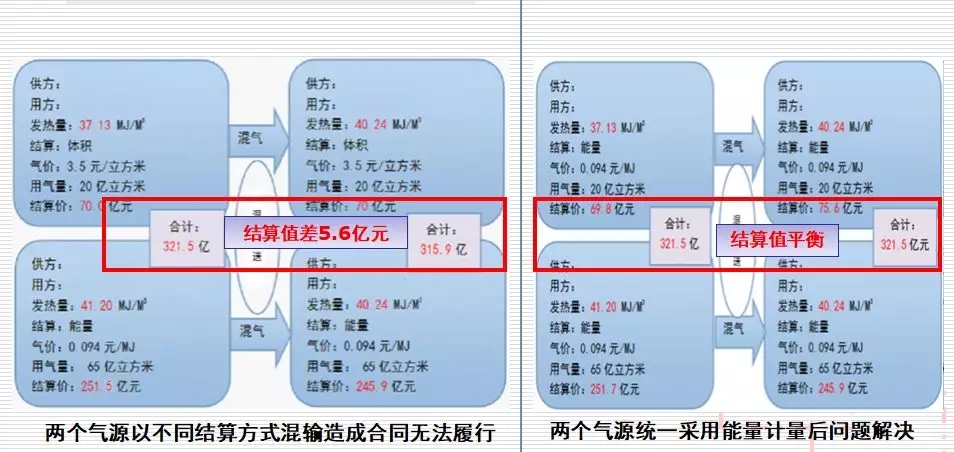 采用能量计量的天然气和采用体积计量的天然气已经出现在同一管网内混输的情况,造成结算困难。