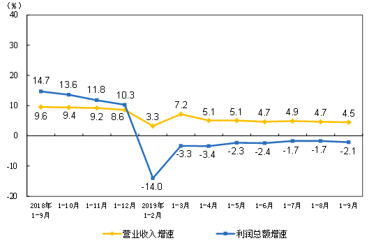 1—9月份,采矿业实现利润总额4279.4亿元,同比增长3.1%;制造业实现利润总额37904.2亿元,下降3.9%;电力、热力、燃气及水生产和供应业实现利润总额3749.9亿元,增长12.3%。