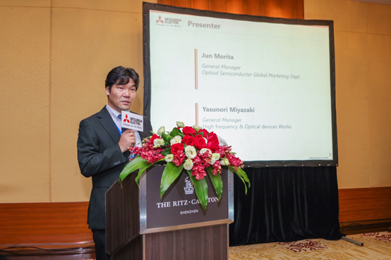 三菱电机光器件全球市场部总经理盛田淳先生、三菱电机高频光器件制作所总经理宫崎泰典先生、大中国区三菱电机半导体技术副总经理庵原晋先生、大中国区三菱电机半导体高频光器件应用技术课经理王炜先生、大中国区三菱电机半导体公关宣传专员葛翌小姐莅临此次发布会。