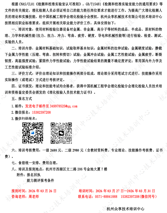 关于2026年03月开展力学性能检验人员职业能力评价工作的通知